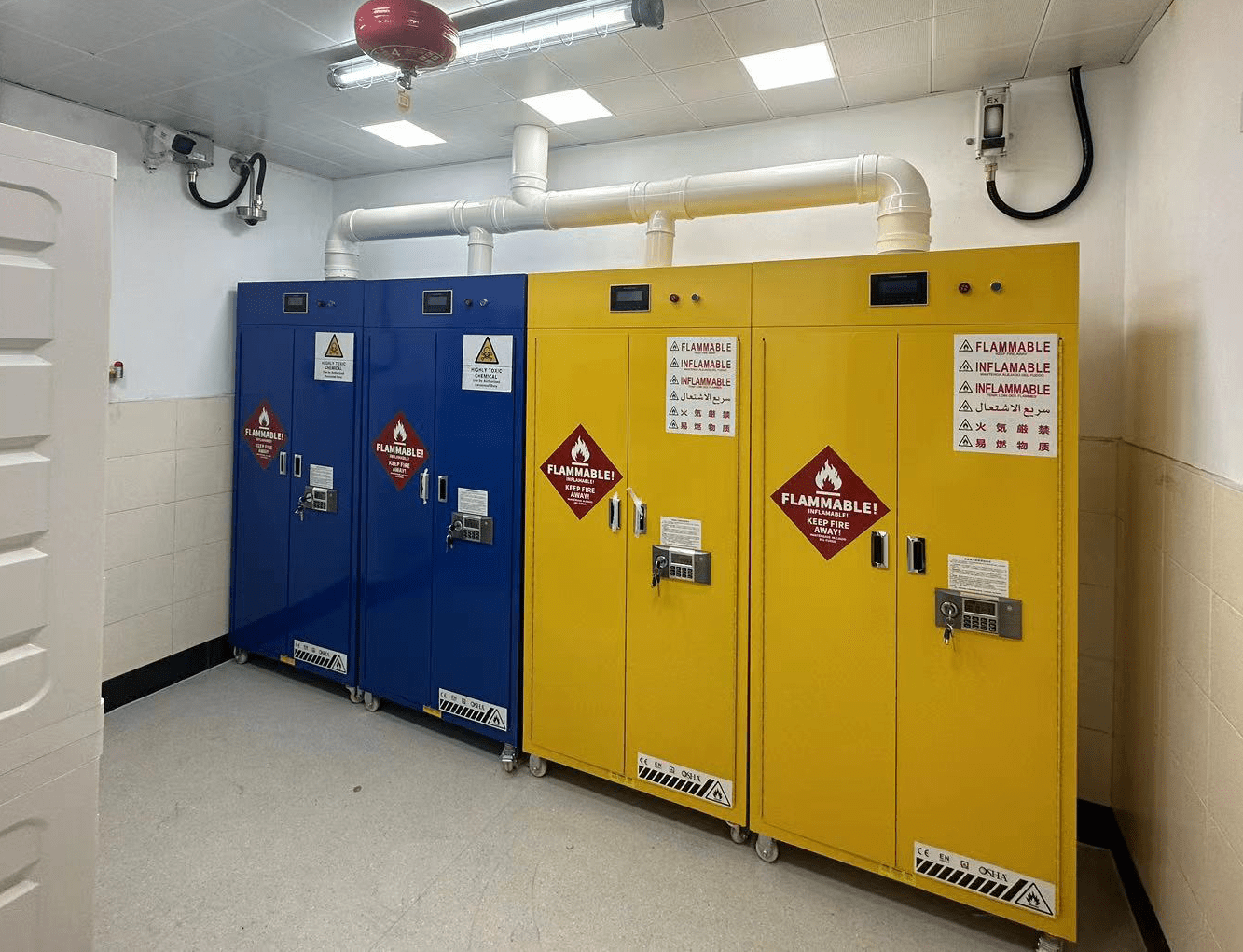 企業在危險化學品管理中,經常會涉及到一類“特殊危險化學品”,那就是易制毒、易制爆、劇毒化學品,因其特殊性為公安部門重點管控物品,易制毒化學品需儲存在設有防盜門窗的儲存室內,并配備視頻監控保留至少3個月以上。同時,采用雙人雙鎖管理,并詳細記錄出入庫情況。而易制爆化學品的儲存室也要求具備防盜門和防盜窗,并實行雙人雙鎖管理。